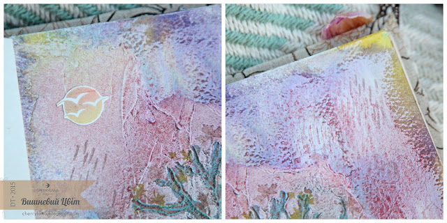 Перший розділювач: на фоні є вгрунтоване листя (справжнє, тільки його уже важко розгледіти за іншим декором) і трафарет-листя.
